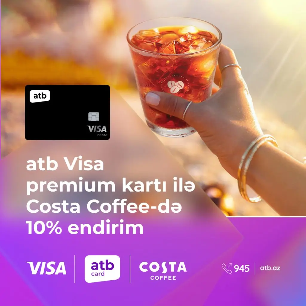Hər zövqə uyğun qəhvələr təklif edən Costa Coffee-də atb premium Visa kartı ilə ödəniş etdikdə 10% endirim qazanacaqsınız.