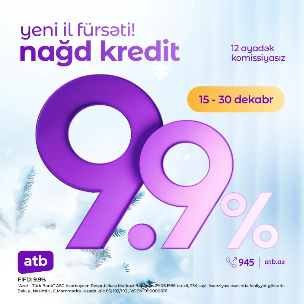 Kampaniya ərzində bir il müddətinədək olan istehlak kreditləri müştərilərə 9,9%-lə təklif edilir.