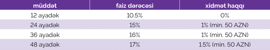Hər bir müştərinin ortaaylıq rəsmi gəlirindən asılı olaraq, zaminlə və ya zaminsiz ala biləcəyi kreditin maksimal məbləği 40 000 manatdır.