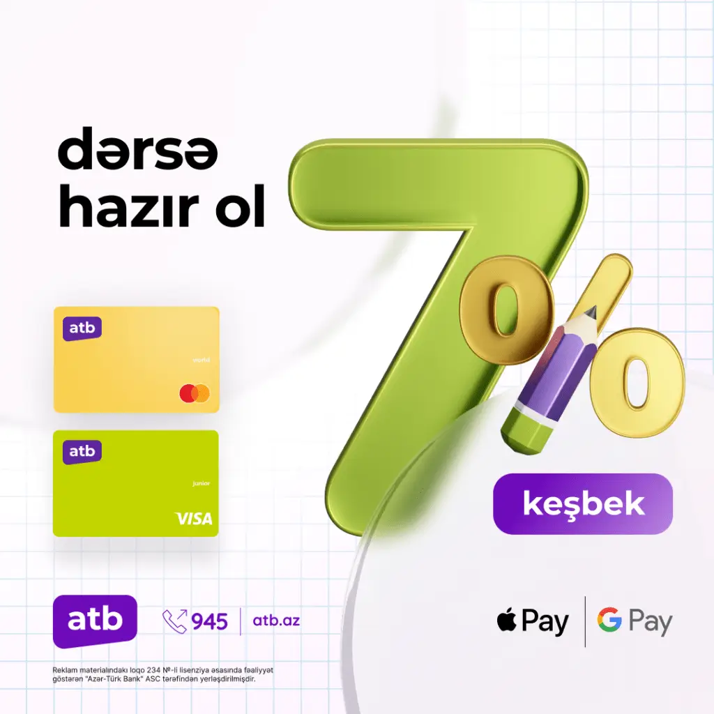 В связи с началом нового учебного года, государственный банк Azer Turk Bank запускает очередную акцию по операциям, осуществляемым в стране посредством систем бесконтактных платежей Google Pay и Apple Pay.