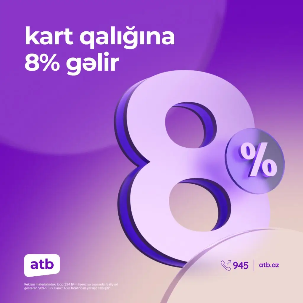 Обратите внимание, что проценты будут начисляться на остаток до 30 000 манат на дебетовых картах atb и зарплатных картах нового поколения, и на остаток до 100 000 манат на карте atb premium.