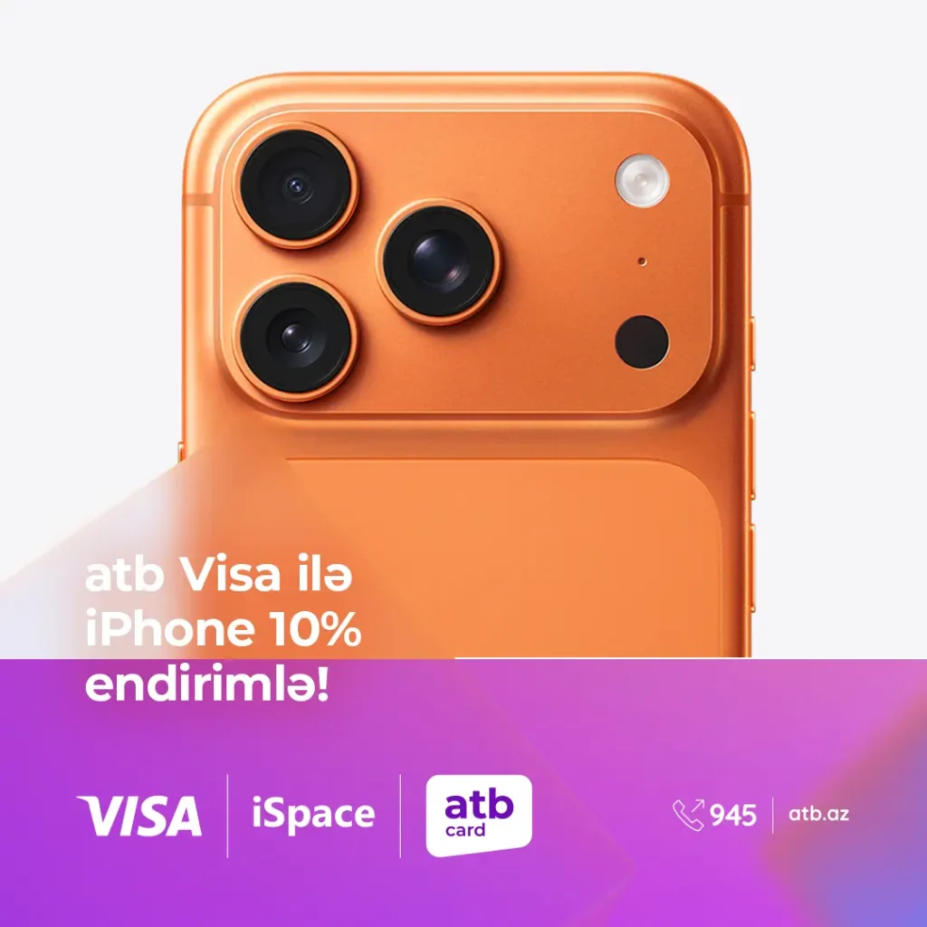 Для держателей карт atb Visa предоставляется скидка 10% при оплате покупок через Apple Pay или Google Pay в магазинах iSpace. Скидка распространяется на покупку любой модели iPhone, включая все модели серии iPhone 17.