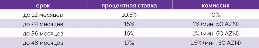 Максимальная сумма кредита, которую может получить каждый клиент, с поручителем или без него, в зависимости от его среднемесячного официального дохода, составляет 40 000 манатов.